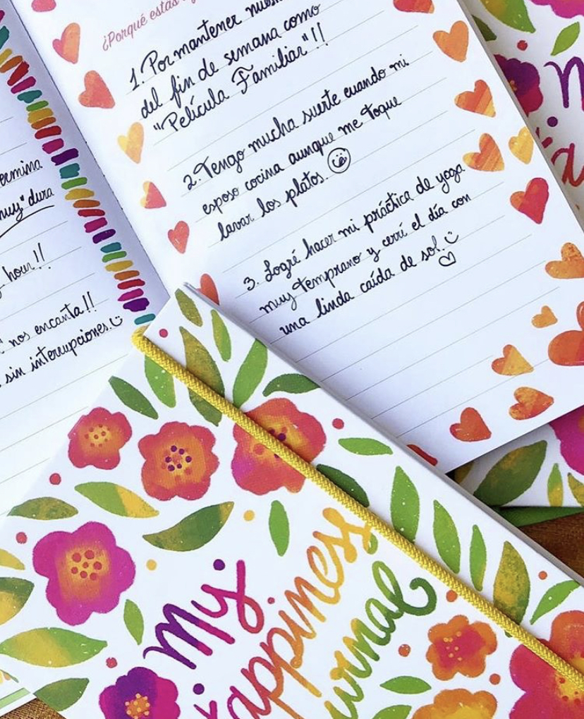 My Happiness Journal es un diario personal para la auto-reflexión y el desarrollo personal. Basado en la Ciencia de la Felicidad y el Mindfulness, contiene una guía de 7 temas que te ayudará a iniciarte en la práctica del journaling y la escritura emocional, a través de virtudes como la compasión, la gratitud, la resiliencia y el desarrollo de metas.